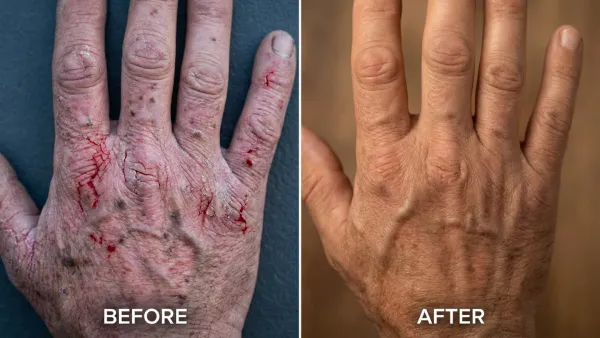 Used it for five days and the difference was obvious. The painful splits around my cuticles healed up, my palms stopped feeling like leather, and I don't have to hide my hands in meetings anymore. My only regret is not ordering more bottles upfront because I'm going through it fast—I use it on my hands, elbows, even my feet.